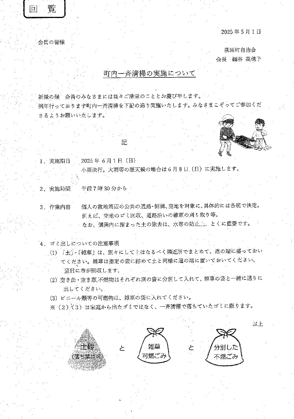 カテゴリー IT & ICT 募集 回覧 防災 回覧_2025年5月_町内一斉清掃のお知らせほか 投稿者 作成者: 管理人 投稿日 2025年5月2日 回覧_2025年5月_町内一斉清掃のお知らせほか へのコメントはまだありません 町内一斉清掃の実施について 2025年度定期総会議事録 2025年度防災会総会議事録 第1回班長会議議事録 カラスに注意 ゴミはルールを守って捨てましょう 防災ボランティア募集 LINE WORKS加入のお願い 子ども会だより 一宮流域通信 生活安全だより 地域移行だより 特定健康診査のお知らせ 国勢調査 調査員大募集 NPO法人ナルク茂原「いちごの会」 くす 新茂原交番だより4・5月 萩小だより 大相撲錣山部屋ふれあい相撲 シニア向けスマホ教室